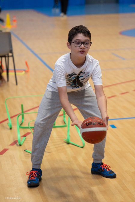 Les jeunes licenciés de l’Elan Sportif Muzolais ont accueilli un groupe de jeunes en situation de handicap issus de l’Institut Médico-Éducatif (IME) de Valence pour une matinée d’ateliers autour du basket.